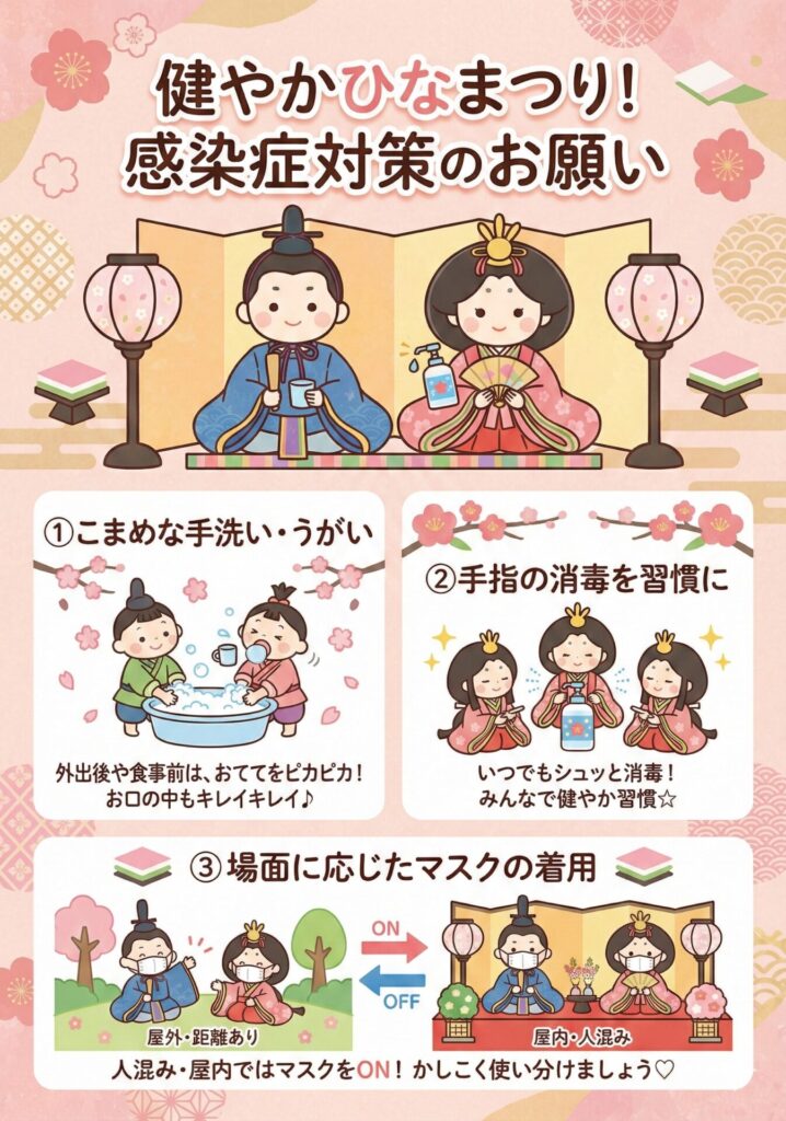 🌸3月3日は「桃の節句」ひな祭りです🌸 Share ポスト LINE 当院では、患者様に少しでも春の訪れを感じていただけるよう、彩り豊かな昼食をご用意しました。 ⭐️お品書き⭐️ ・彩り散らし寿司 ・鶏肉の胡麻漬け焼き ・お吸い物 ・フルーツ盛合わせ 栄養バランスはもちろん、見た目でも楽しんで頂けるよう、一つひとつ心を込めて盛り付けました。 「美味しかった〜完食したよ!」という嬉しいお声もいただきました✨ 皆様の健康と、穏やかな春の訪れをスタッフ一同願っております。 長崎県佐世保市木風町1451-2 医療法人かえで 溝口内科・呼吸器内科 2026/03/05