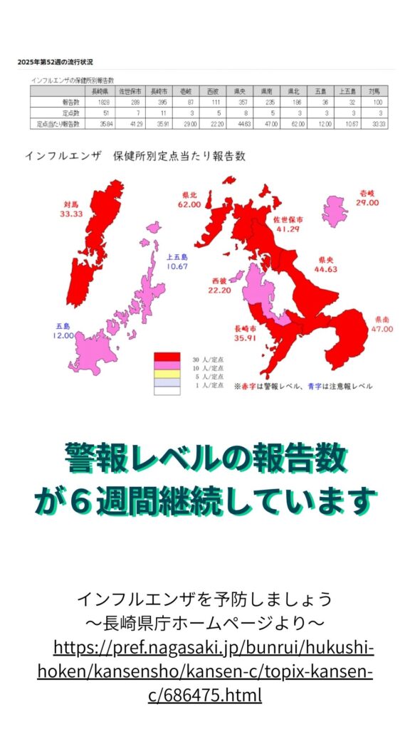 (参考:長崎県庁ホームページ「インフルエンザを予防しましょう」)2025年第52週(12月22日から12月28日)